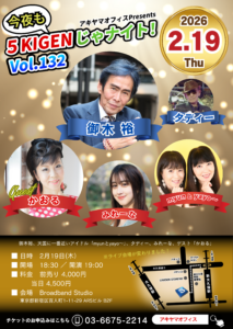 2026年2月19日(木)今夜も5KIGENじゃナイト!Vol.132出演!
